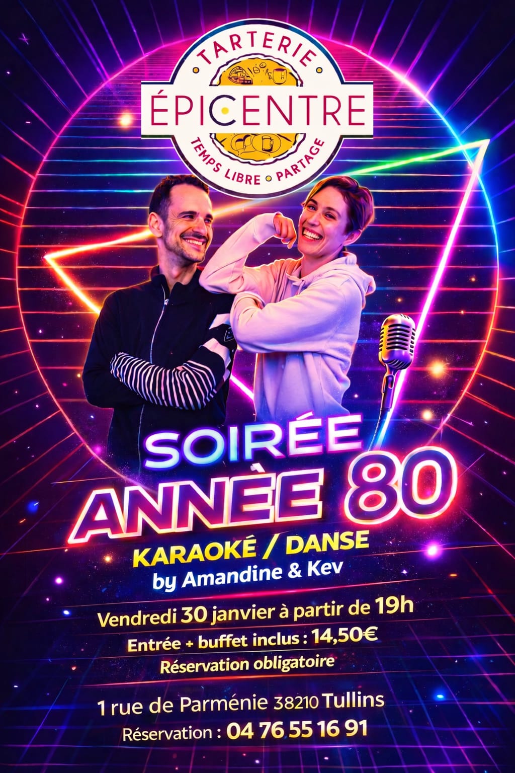 Ce vendredi soir, Karaoké danse 80’s à l’Épicentre!!! Déguisez vous et rejoignez nous pour une soirée dansante et musicale avec l’aimable participation de: Amandine, qui vous apprendra quelques chorées 80’s avant de vous lancer sur la piste de danse Kevin, qui vous fera chanter les tubes mythiques de ces années la Vous même pour chanter, danser, se déguiser, se déhancher … - Duo Laurent LOUVEL & Fred DORLAND